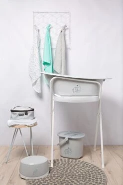 Met behulp van het click-systeem plaats je het badje eenvoudig en met 2 clicks op de Bebe-Jou Click Badstandaard. Net zo makkelijk ‘click’ je het badje weer los door aan de onderzijde van de standaard het systeem in te knijpen.