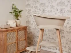 In het Bebe-Jou Sense Edition Bad Taupe kan je kindje heerlijk badderen. Het babybadje bevat een digitale thermometer die zowel de kamertemperatuur als de watertemperatuur kan meten. Deze gegevens worden via een draadloze verbinding weergegeven op de digitale display. Ook is de display voorzien van een timer die in te stellen is op 10 minuten, zo zit je kindje nooit te lang in bad. De geadviseerde hoeveelheid water om het badje te vullen is ongeveer 14 liter. De ideale water temperatuur in het badje is 37 graden. Je kunt het Bebe-Jou badje eenvoudig op de Sense badstandaard klikken. Dankzij het kliksysteem kan het badje niet schuiven. Voor het vullen en legen van het babybadje bestaat er een luieremmer. Wanneer je het badje sneller leeg wilt hebben is de afvoerslang aan te raden.