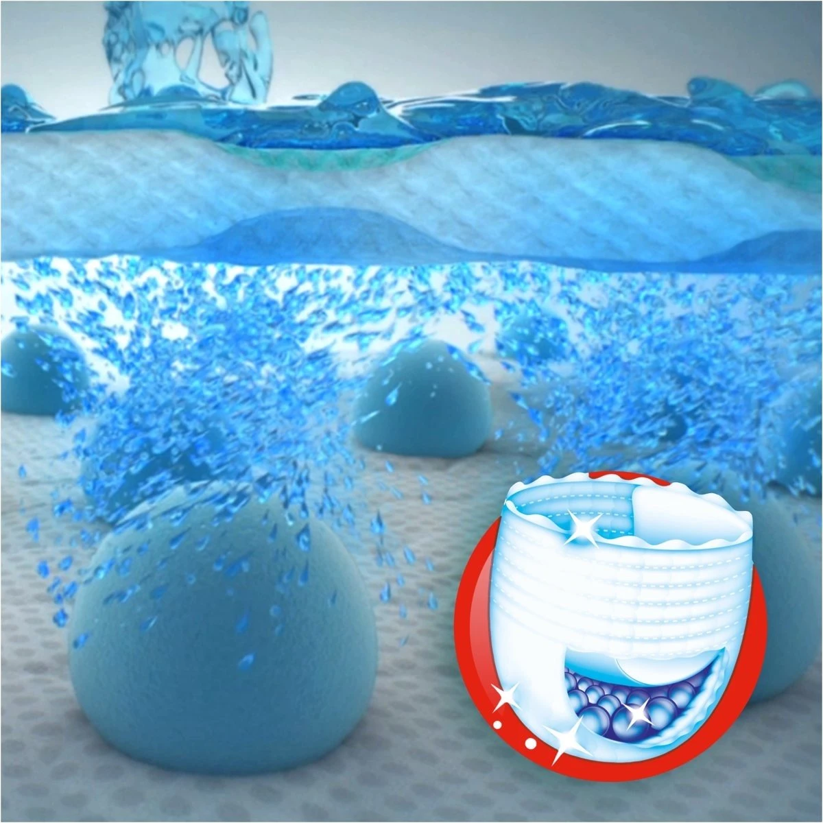 De absorberende microparels houden tot 30x hun eigen gewicht in vocht vast, zodat je baby kan genieten van elke beweging.