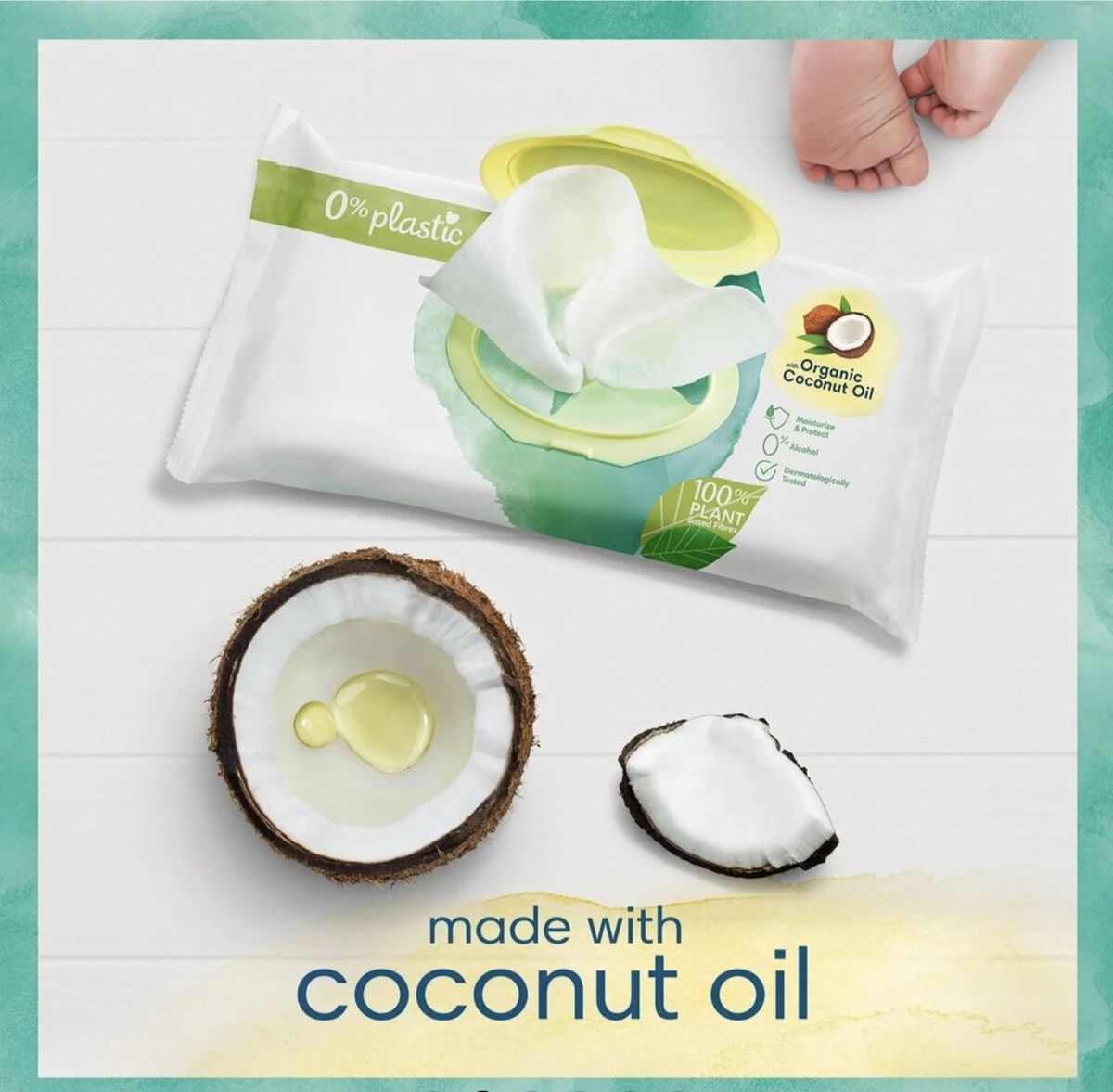 Als het om het reinigen en beschermen van je baby’s gevoelige huid gaat, zou je niet met minder genoegen moeten nemen. Pampers Coconut Pure Protection babydoekjes zijn gemaakt met een vleugje kokosolie, een natuurlijk krachtige vochtinbrenger, die de voordelen van een lichte hydratatie combineert met het gemak van een doekje. Elke keer dat je met het doekje veegt, wordt er een beschermend laagje op de huid gelegd om irritatie te helpen voorkomen.