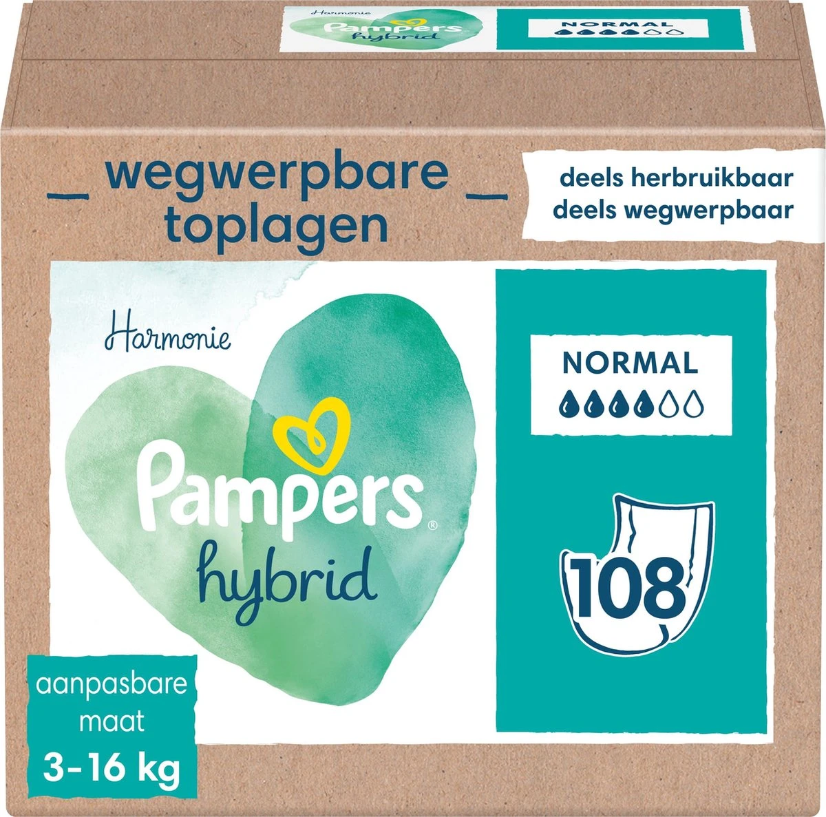 Pampers Harmonie Hybrid absorberende wegwerpbare toplagen zijn ontworpen om te worden gebruikt met de Pampers wasbare luier voor bescherming rondom tegen lekken. Ze helpen de gevoelige huid van je baby te beschermen – ze zijn gemaakt met materialen die zachte, plantaardige vezels bevatten. 0% parfum, en ultrazachte materialen. Ze zijn hypoallergeen en dermatologisch getest voor de gevoelige huid van je baby, en gemaakt met 100% aangekochte gecertificeerde hernieuwbare elektriciteit*.
