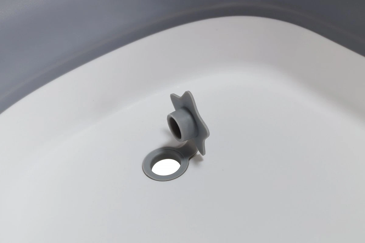 Dit handige opvouwbare kinderbadje in maat M, heeft een flexibele buigbare wand (grijs). Hierdoor kun je het plat opvouwen en compact opbergen. Superhandig voor thuis, op de camping of bij de oppas. De bovenrand, uitklap-poten en bodem zijn gemaakt van stevig kunststof (mat wit) waardoor het niet inzakt en alles veilig te gebruiken is, ook met je pasgeboren kindje.